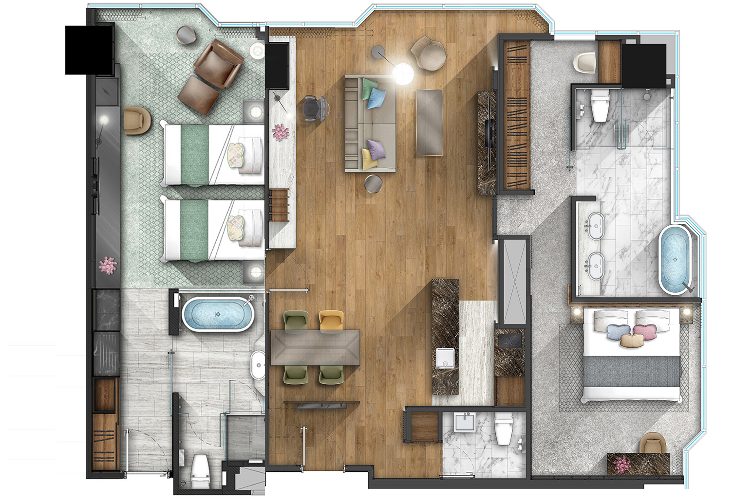 Designed for longer stays or family living, our Two Bedroom Premium Apartment offers 140 sqm of stylish comfort and convenience. Featuring one king bedroom and one twin bedroom, the apartment is perfectly suited for families of up to four adults.