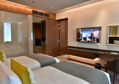 ห้องเอ็กเซกคิวทิฟ อพาร์ทเม้นท์ที่กว้างขวางกว่า 70 ตารางเมตรที่พร้อมให้บริการแขกทุกท่านด้วยสิ่งอำนวยความสะดวก อาทิเช่น ห้องอาบน้ำแบบวอล์คอิน โต๊ะทำงานขนาดใหญ่ เพดานห้องสูงโปร่งเลาจน์ส่วนตัวภายในห้อง ทีวีแอลอีดี 55 นิ้วที่ติดตั้งทั้งห้องนอนและเลาจน์ เหมาะอย่างยิ่งสำหรับการพักผ่อนแบบเป็นส่วนตัว ขณะที่วางแผนท่องเที่ยวในวันถัดไป